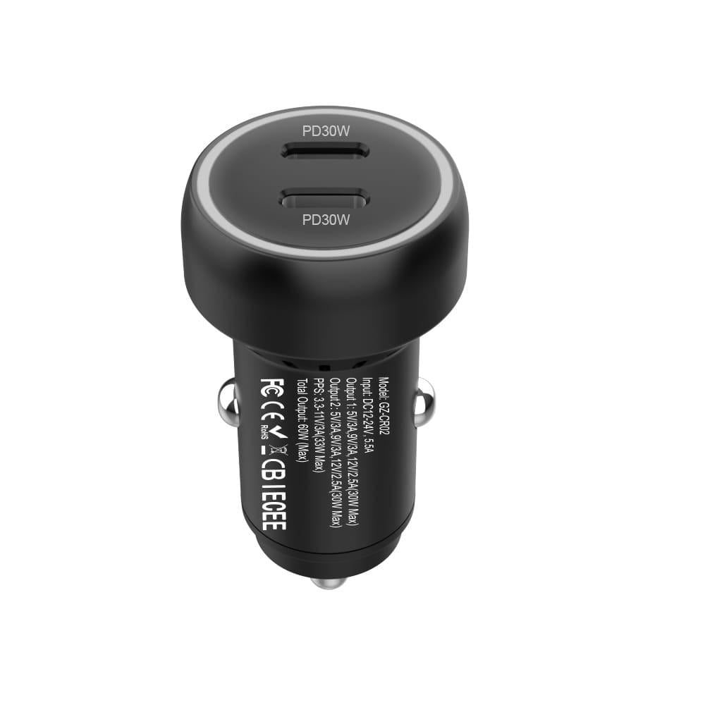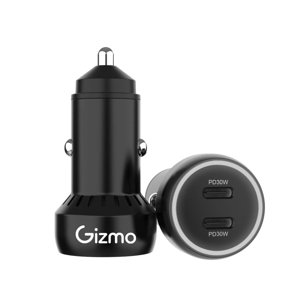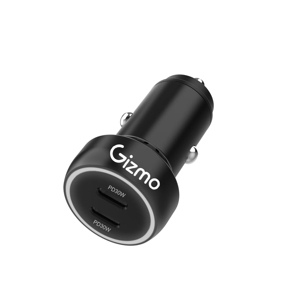 جيزمو شاحن سيارة Gizmo بقوة 60 واط بمنفذين تايب سي PD |PPS 60W 2 Port: USB-C 30W MAX USB-C 30W MAX إضاءة محيطية مصنوع من مادة الألمنيوم حساس حماية من الجهد الزائد | التيار الزائد | الماس الكهربائي