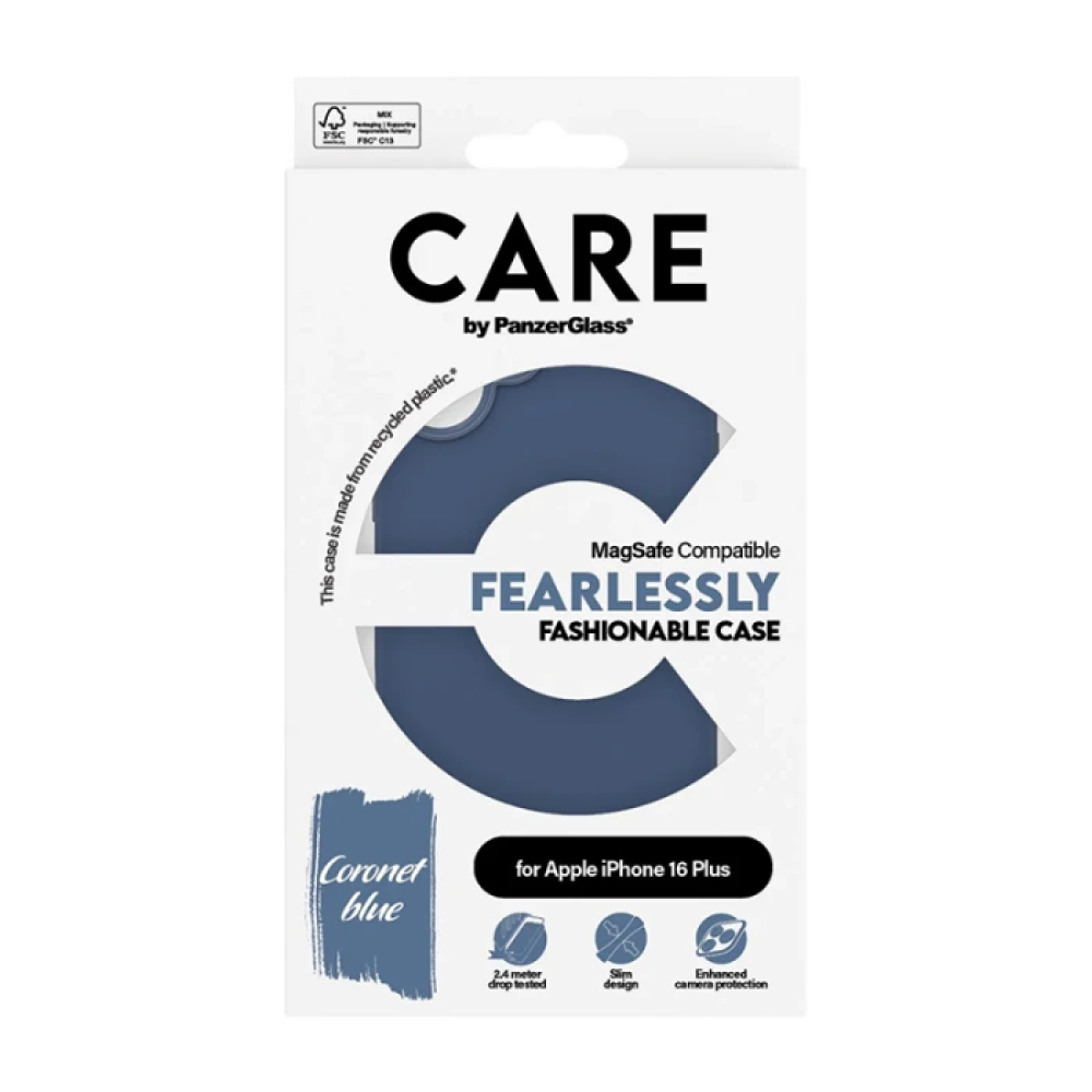 بانزر جلاس-كفر حماية ايفون 16 بلس CARE يدعم تقنية الماج سيف - أزرق