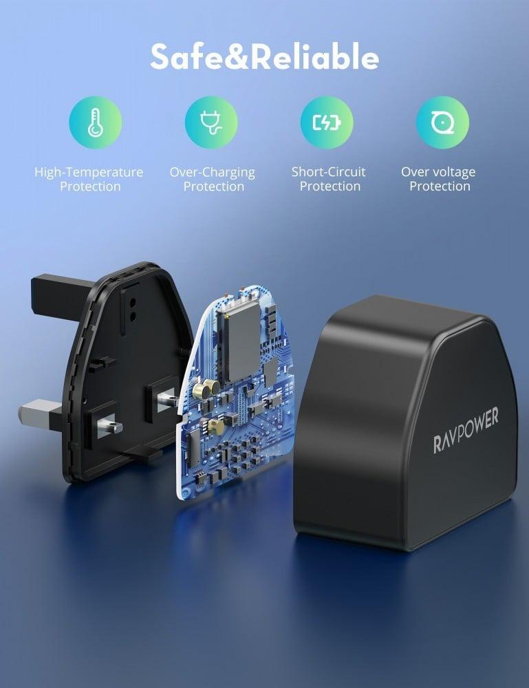 شاحن الحائط RAVPower RP-PC1041 هو شاحن سريع وفعال بقدرة 20 واط مزود بمنفذ USB-C يدعم تقنية Power Delivery (PD). تم تصميمه خصيصًا لتوفير شحن سريع وآمن للأجهزة الذكية مثل هواتف iPhone وأجهزة iPad وأجهزة الألعاب المحمولة، مما يجعله خيارًا مثاليًا للاستخدام اليومي والسفر.