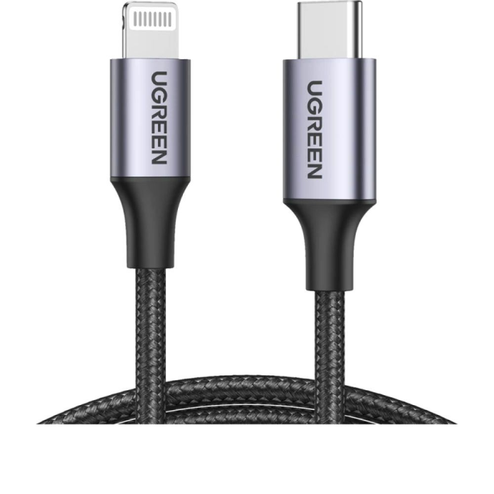 يوجرين -سلك شاحن نايلون مظفر USB-C إلى آيفون بطول 1 م - أسود
