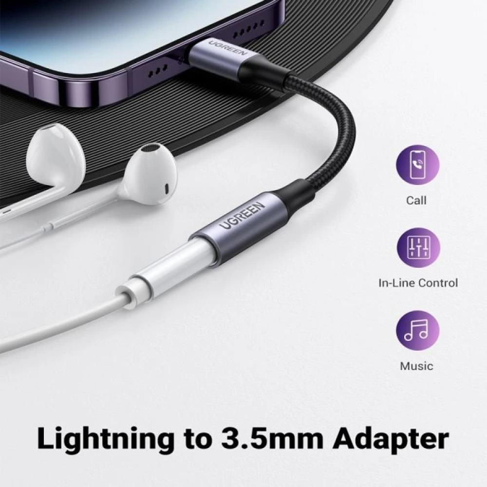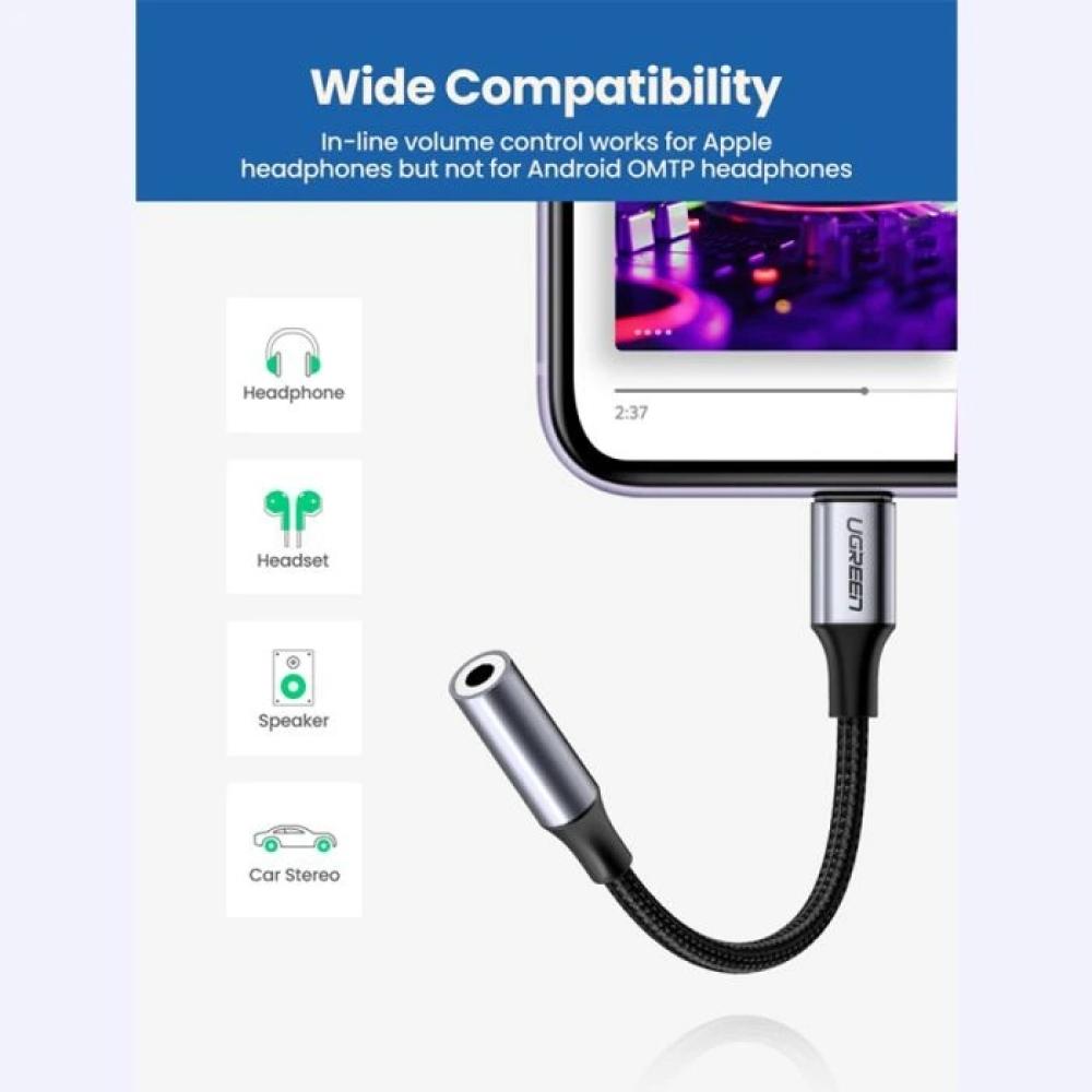 يوجرين - وصلة سماعة للآيفون إلى 3.0 مم منفذ سماعة بطول 10 سم - أسود