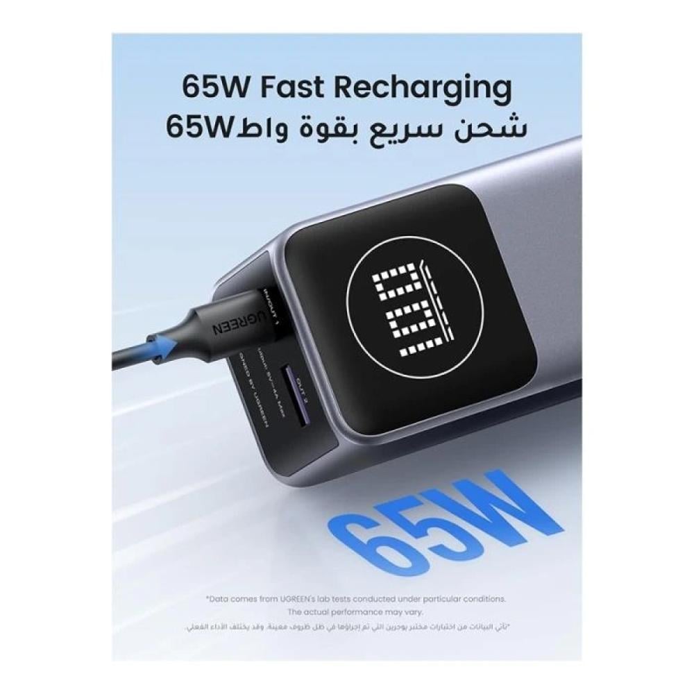 شحن ذاتي سريع: شحن سريع ثنائي الاتجاه بقوة 65 وات. يتم شحنه بالكامل في 1.5 ساعة فقط. قل وداعًا لانتظار الشحن الطويل.