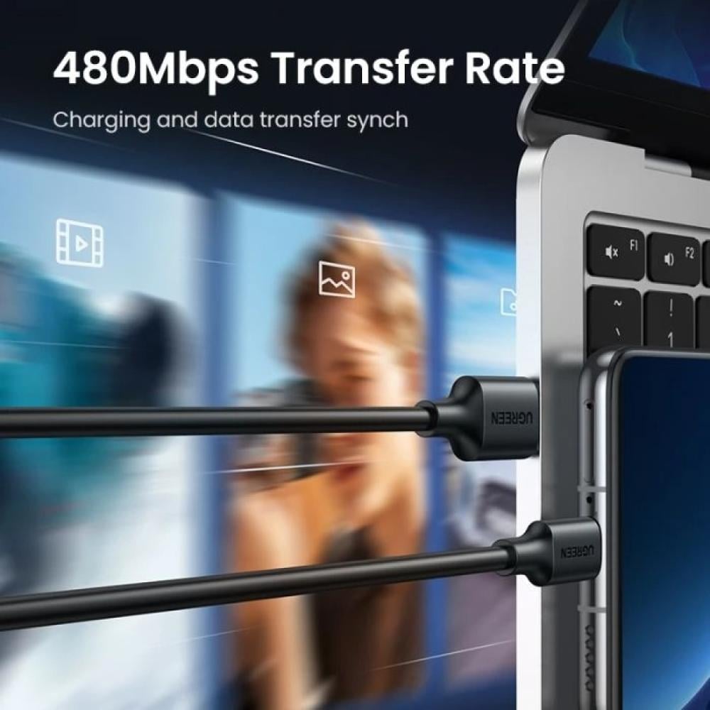يوجرين -سلك شاحن من USB إلى USB-C مضفر بطول 3 م - أسود