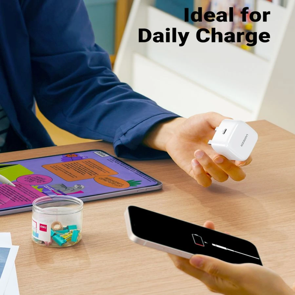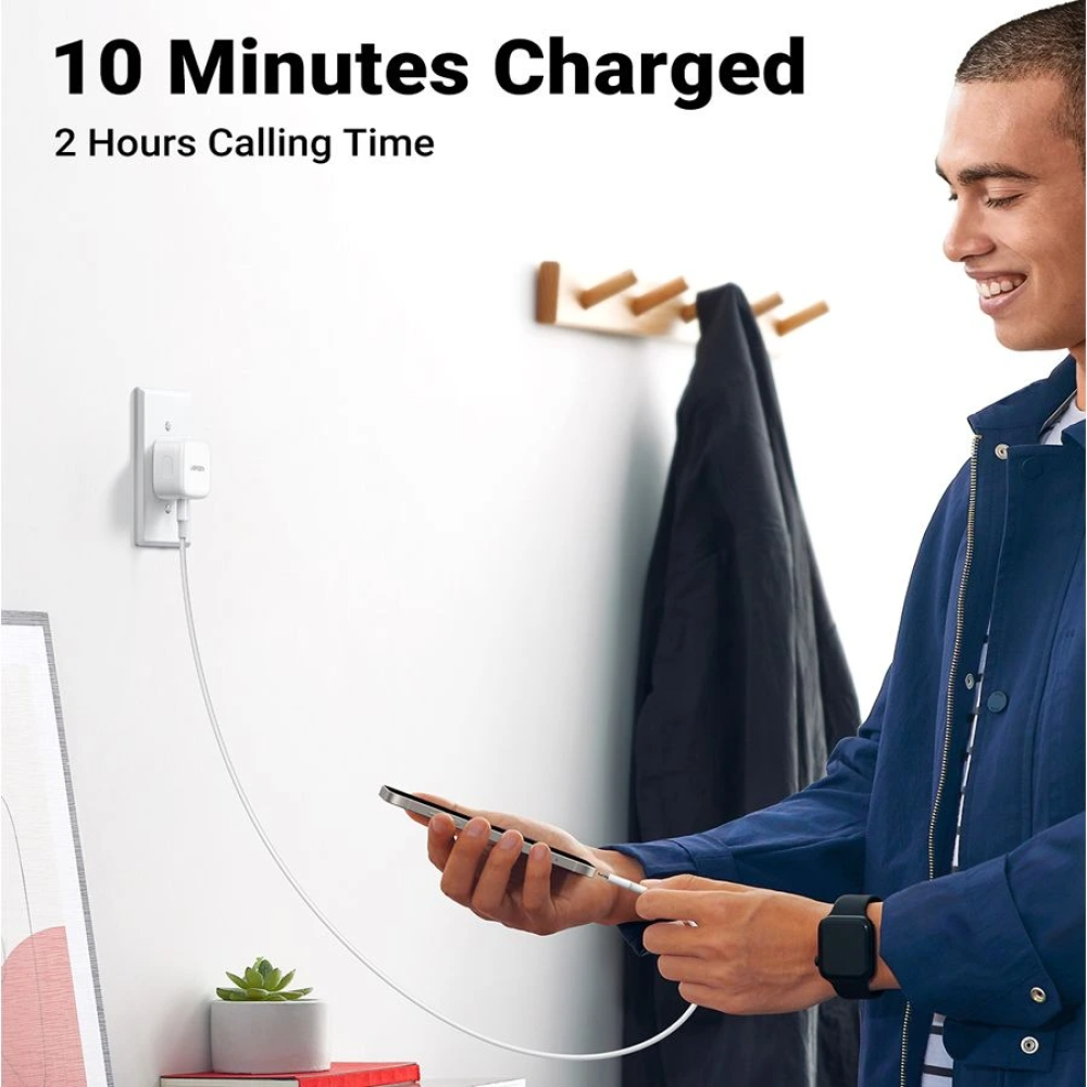 شاحن لجوال ايفون 14 سريع بي دي بقوة 20 واط: مخرج بقدرة 20 واط يتيح هذا الشاحن السريع بمنفذ USB نوع C شحن أحدث أجهزة ايفون/ايباد بأقصى سرعة. على سبيل المثال، يمكن شحن موبايل ايفون 14 برو من 0% إلى 50% خلال نصف ساعة فقط، وهو أسرع بكثير من محول شحن ايفون القديم 5 فولت/1 أمبير.