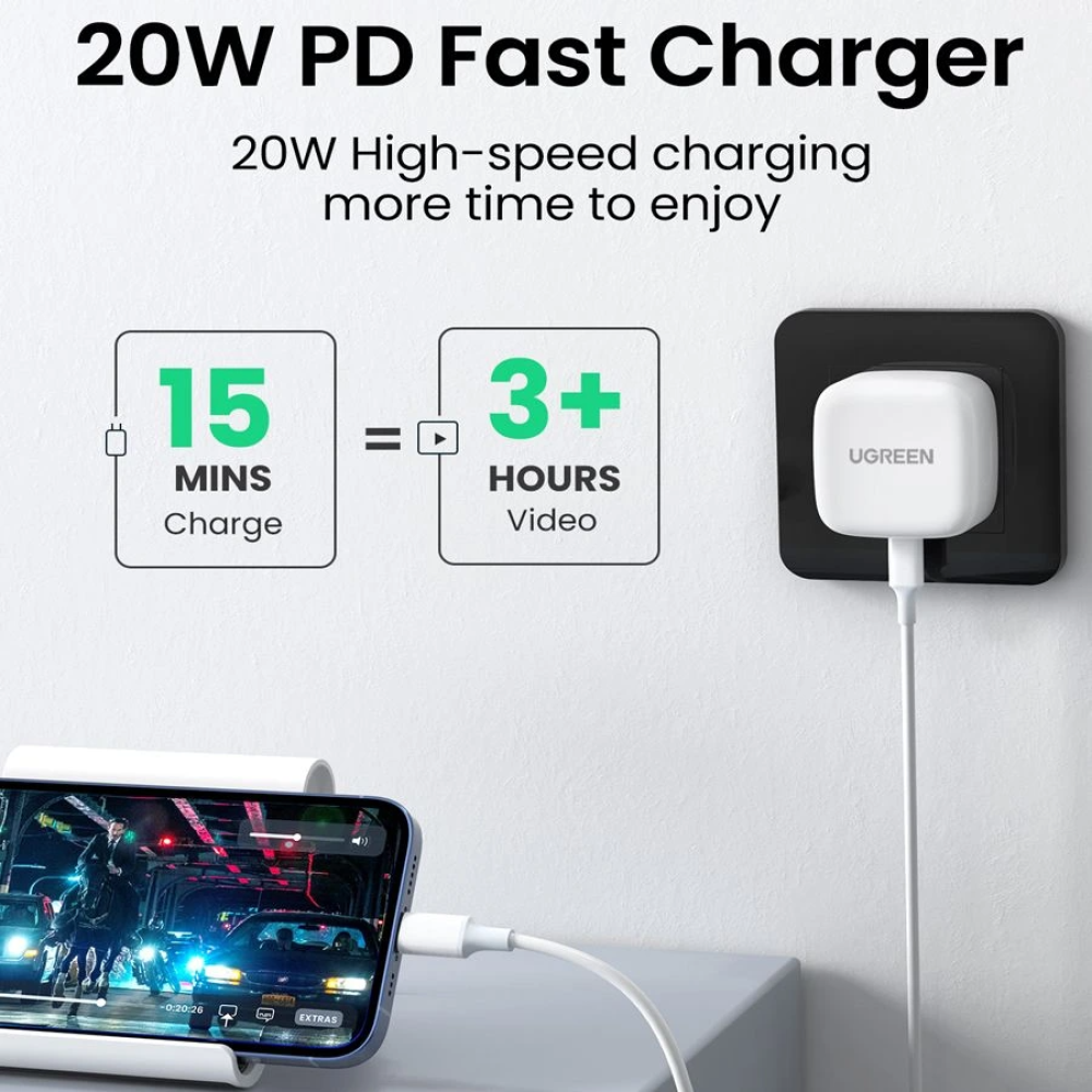 كيبل شحن سريع معتمد من ابل: مصمم بشريحة معتمدة من ابل، يضمن كيبل الشحن بمنفذ USB نوع C إلى لايتنينج لجوال ايفون من يوجرين التوافق بنسبة 100% للشحن السريع والمزامنة لجميع أجهزة ايفون لايتنينج ذات 8 دبابيس. عدم وجود رسالة تحذيرية مُنبثقة.